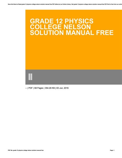 Presently you are looking for an Grade 12 Physics College Nelson Solution Manual example of which we provide here within some kind of document formats many of these as PDF, Doc, Energy Point, and also images of which will make it simpler for you to create an Grade 12 Physics College Nelson Solution Manual yourself. For a more clear look, you are able to open a few examples below. Each of the good examples about Grade 12 Physics College Nelson Solution Manual with this web site, we get from a number of sources so you can create a better file of your own.
